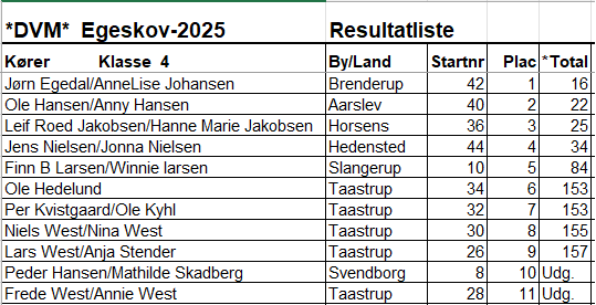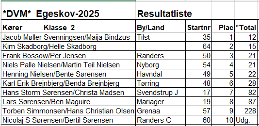 Resultatliste Egeskovløbet 2025